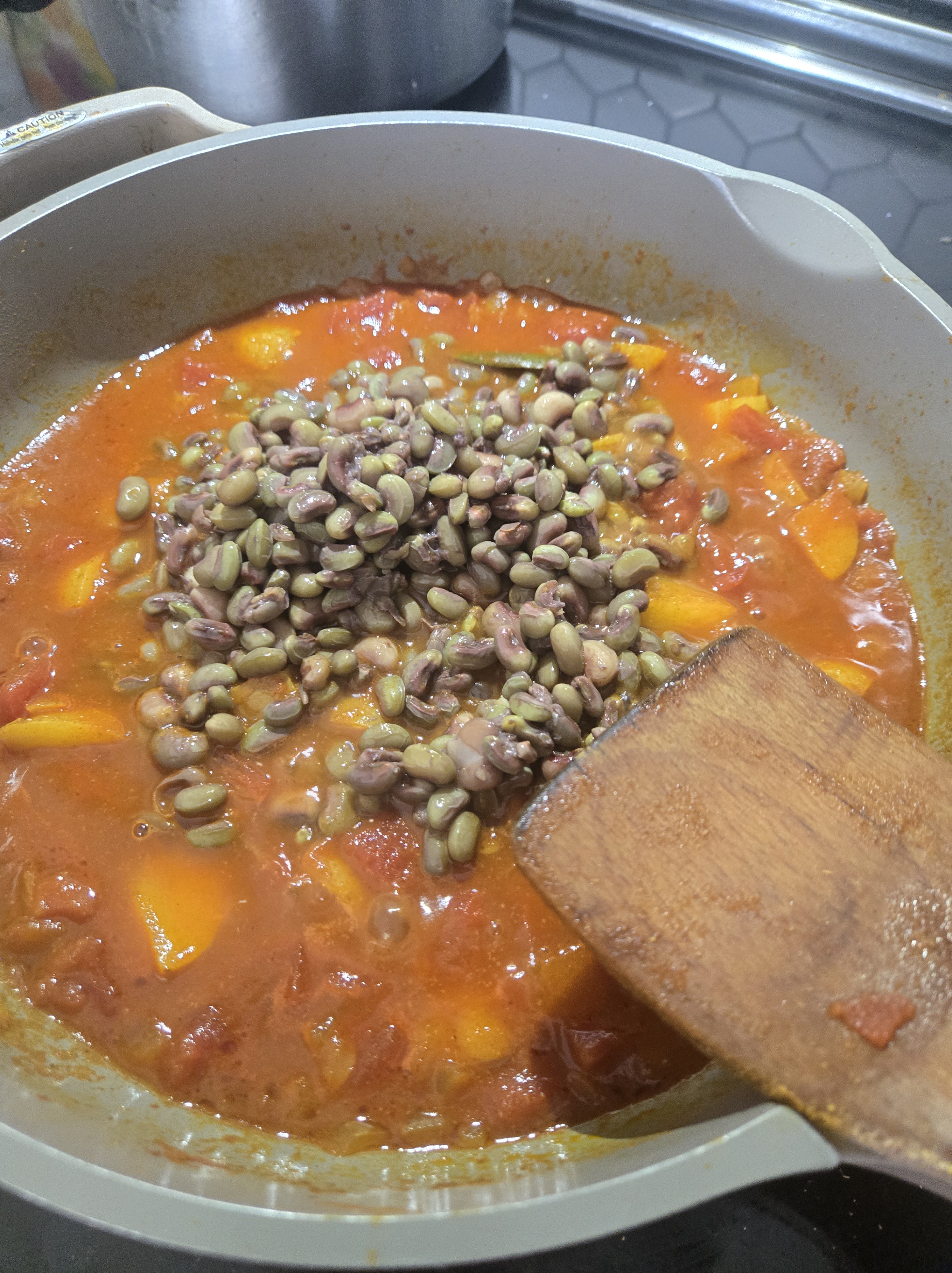 As legumes, cowpeas help fix nitrogen in the soil, enriching it for whatever I plant next. They also fed us: the grandkids helped harvest and taste them. I used them in a curry stew and tossed them into salads. Nothing tastes better than what you grow yourself.